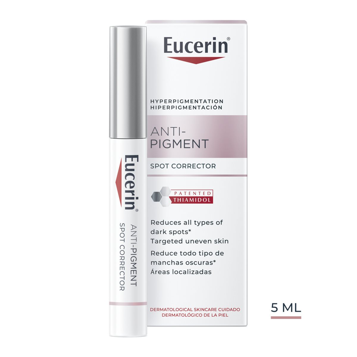 Eucerin Anti-Pigment Spot Corrector on täsmähoitotuote joka on suunniteltu pienille ihoalueille, joilla esiintyy pigmenttimuutoksia. Sen tahmaamaton geelimäinen koostumus levittyy helposti applikaattorin avulla suoraan kohdealueelle. Tuote sisältää Thiamidolia, tehokasta ja patentoitua aktiivista ainesosaa, joka vaikuttaa pigmenttimuutosten syntymekanismiin vähentämällä melaniinin liikatuotantoa. Kliiniset ja dermatologiset tutkimukset ovat osoittaneet, että Thiamidol häivyttää tummia läiskiä ja ehkäisee uusien muodostumista.