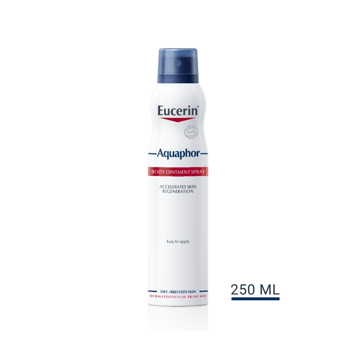 Innovatiivisen spray-annostelijan ansiosta Eucerin Aquaphor Body Ointment Spray on ihanteellinen tuote laajojen ihoalueiden, kuten käsien, jalkojen ja selän hoitoon. Koska suutin toimii myös ylösalaisin, voidetta on helppo levittää ilman apua myös hankalasti saavutettaville ihoalueille. Vältä kuitenkin tuotteen suihkuttamista kasvojen lähelle tai suoraan kasvoille.