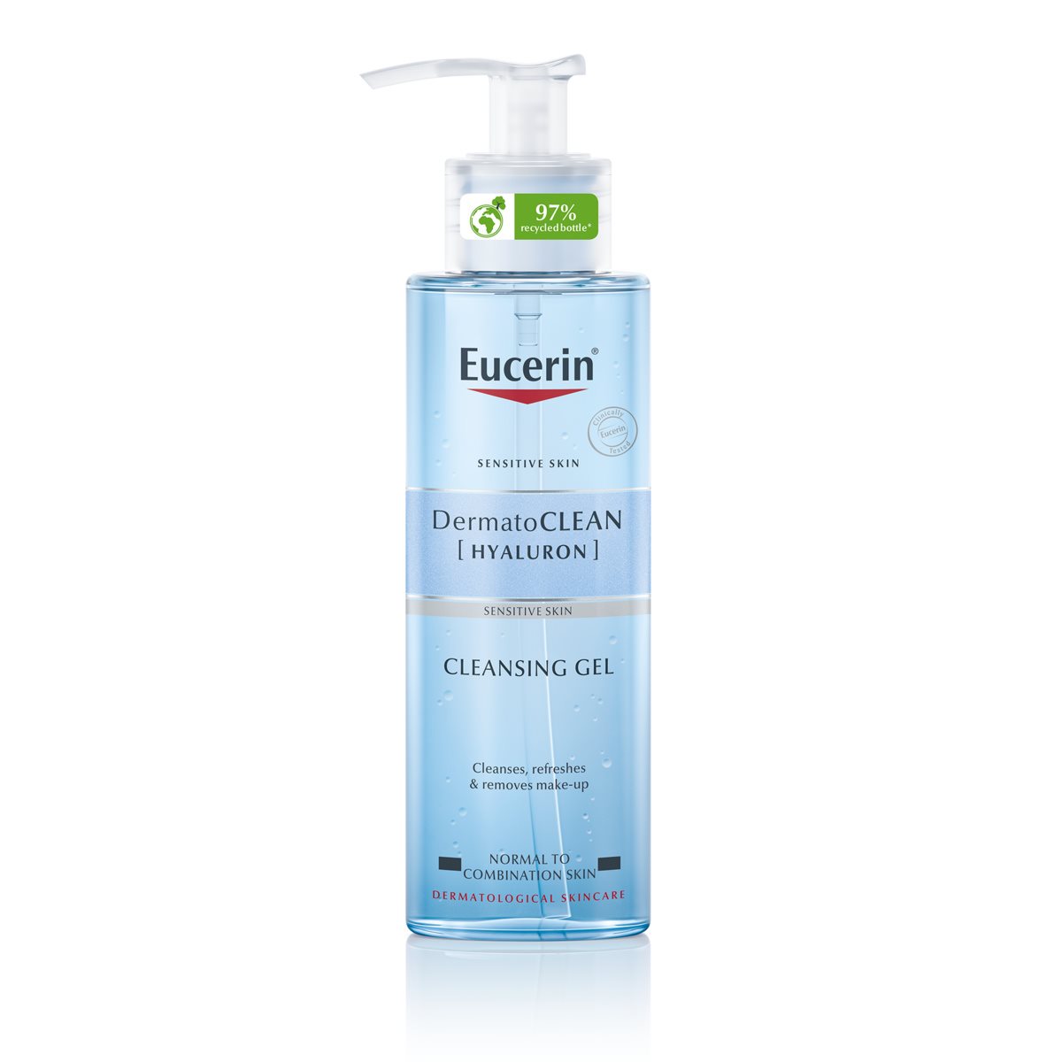 Eucerin DermatoCLEAN Cleansing Gel -puhdistusgeeli on hellävarainen, mutta tehokas geelimäinen kasvojenpuhdistusaine, joka poistaa epäpuhtaudet, meikin ja ylimääräisen talin ihoa kuivattamatta. Puhdistusgeelimme on yhdistelmä erittäin hellävaraisia puhdistavia ainesosia, hyaluronihappoa ja muita luonnollisia ainesosia, jotka auttavat ihoa säilyttämään sen luontaisen kosteustasapainon. Se jättää ihon puhtaan, kosteutetun ja pehmeän tuntuiseksi. Eucerin DermatoCLEAN Cleansing Gel on ihanteellinen puhdistusgeeli normaalille ja sekaiholle ja se soveltuu kliinisten ja dermatologisten testien perusteella myös herkälle iholle.
