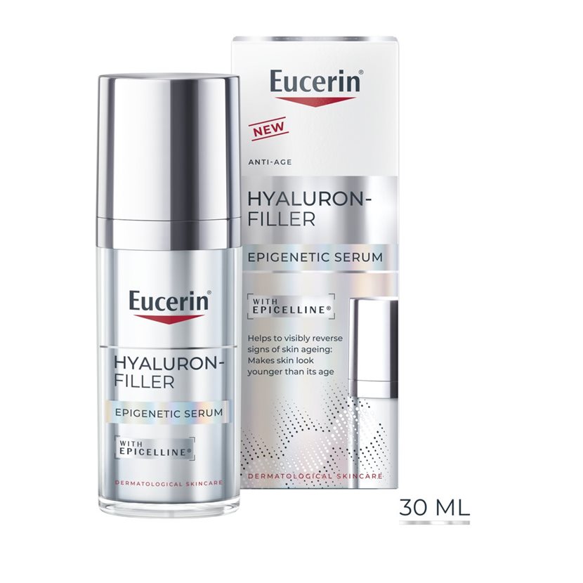 Eucerin Hyaluron-Filler Epigenetic Serum perustuu 15 vuoden epigeneettiseen tutkimukseen ja patentoituun Age Clock -teknologiaan, jonka on kliinisesti todistettu aktivoivan uudelleen sammuneita geenejä. Tärkein vaikuttava aine on Epicelline, joka tukee ihon uusiutumista ja saa sen näyttämään nuoremmalta.